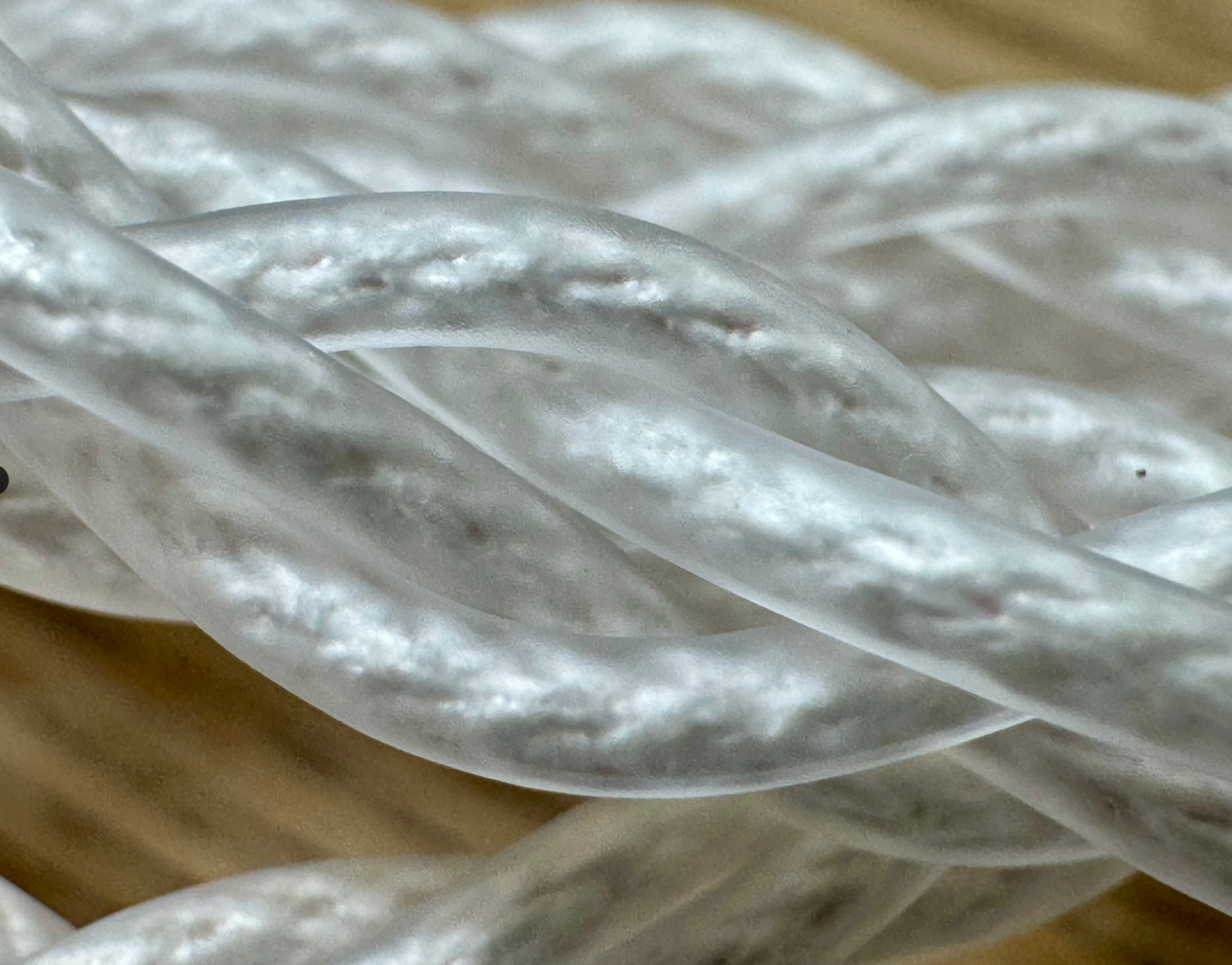 柔らかくてしなやかで、手触りがとても良いです。高級ケーブルでよくある硬めのフッ素樹脂とは正反対で、シルクのような滑らかさと柔軟性があります。これなら長時間使っても耳や首に負担が少なそう。